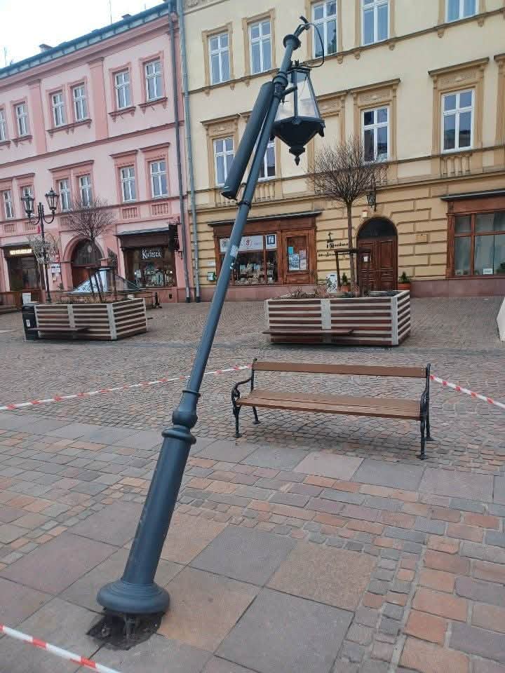 Niefrasobliwy kierowca podczas jazdy po płycie rynku uszkodził lampę powodując straty w wys. ok. 16 tys. zł. Na szczęście jarosławska fontanna została nienaruszona. Operator monitoringu wezwał na miejsce patrol policji i sprawca tego zdarzenia zatrzymany został na pl. Ks. Piotra Skargi w Jarosławiu. Dalsze postępowanie w tej sprawie prowadzi Komenda Powiatowa Policji w Jarosławiu.