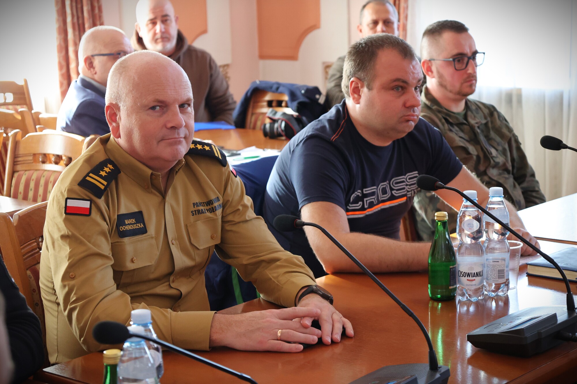 W spotkaniu uczestniczyli: burmistrz miasta Marcin Nazarewicz - szef Miejskiego Zespołu Zarządzania Kryzysowego, prezesi miejskich spółek PGKiM i PWiK, dyrektorzy Miejskiego Ośrodka Pomocy Społecznej i Powiatowej Stacji Sanitarno-Epidemiologicznej, komendant Państwowej Powiatowej Straży Pożarnej, Powiatowy Inspektor Nadzoru Budowlanego, Powiatowy Lekarz Weterynarii, przedstawiciele Centrum Opieki Medycznej, Powiatowego Zarządu Dróg, Komendy Powiatowej Policji, 20 Przemyskiej Brygady Obrony Terytorialnej, Straży Miejskiej, Spółdzielni Mieszkaniowej, Domu Pomocy Społecznej, dyrektorzy Biura Bezpieczeństwa i Zarządzania Kryzysowego urzędu wraz z pracownikami, Wydziału Spraw Społecznych oraz Wydziału Infrastruktury Drogowej