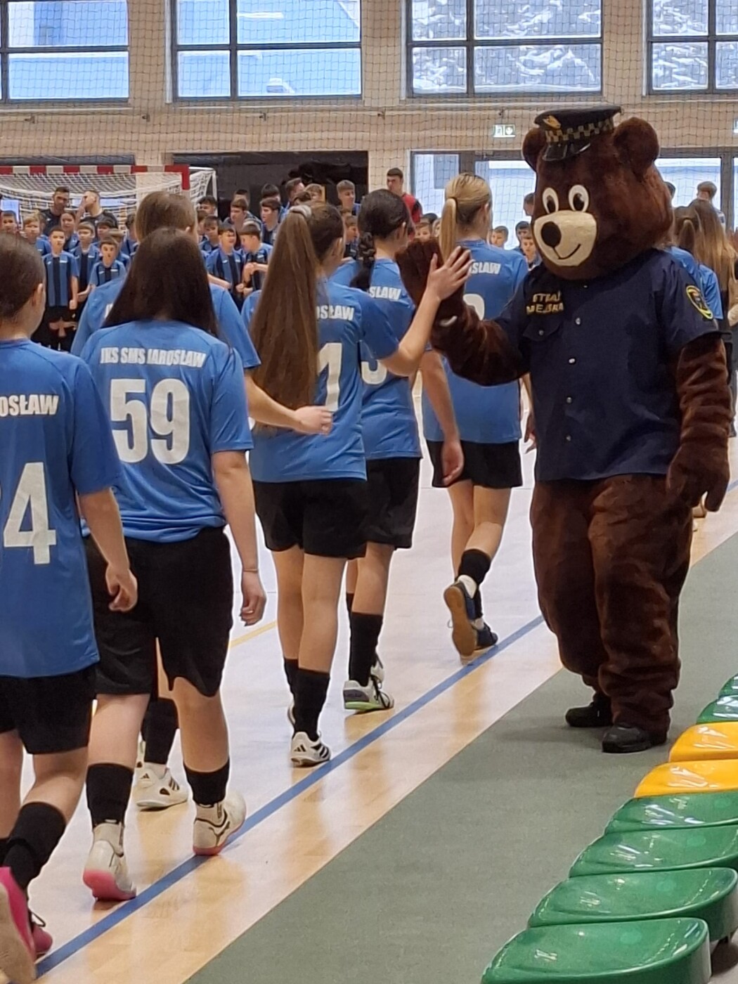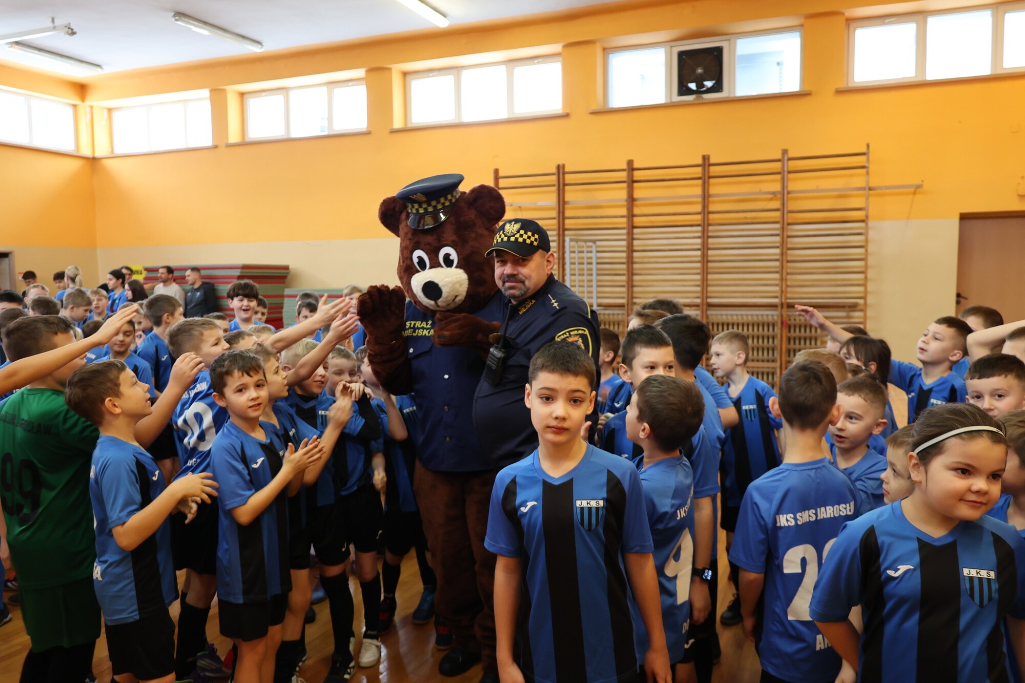 Podczas oficjalnego otwarcia nowo wyremontowanej hali sportowej Miejskiego Ośrodka Sportu i Rekreacji w Jarosławiu, najmłodsi sportowcy poznali Strażnika Misia - nową maskotkę. Wkrótce zawita ona do szkól i przedszkoli. Zabawa, to najlepsza forma nauki o zasadach bezpieczeństwa.